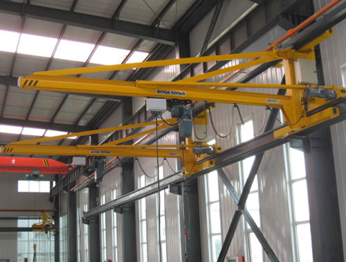 這種懸臂吊適用于多工位流水作業(yè),不需要地面空間,利用安裝在墻壁上的軌道,沿軌道運(yùn)行以實(shí)現(xiàn)多個(gè)工位的工件吊卸。減少工位對車間大型橋式起重機(jī)的依賴,減少等待時(shí)間提高工作效率。